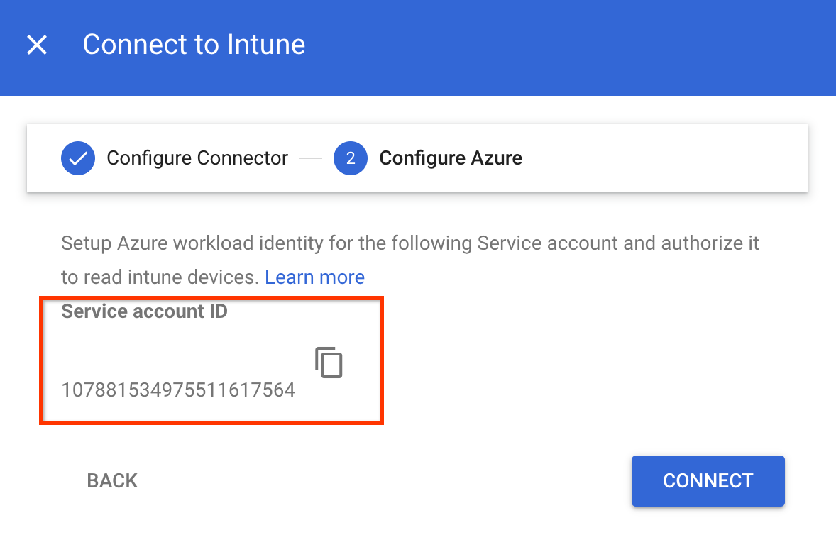 - Na caixa de diálogo Conectar ao Intune, clique em Conectar.
