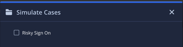 In diesem Beispiel wird ein Fall in einen simulierten Fall mit „Risky Sign On“ als Warnungsname umgewandelt, der auf dem Startbildschirm als einer der verfügbaren simulierten Fälle angezeigt wird.