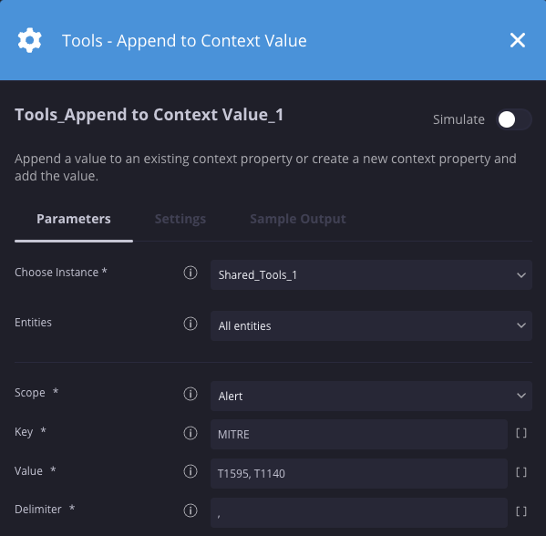 In diesem Szenario fügen wir einem vorhandenen Kontextschlüssel „MITRE“ die Werte „T1595“ und „T1140“ hinzu.