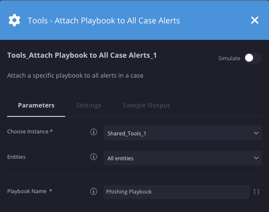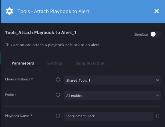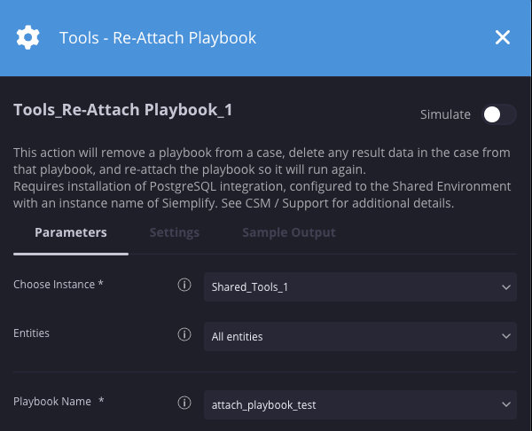 | Playbook-Name | Drop-down-Menü | – | Ja | Geben Sie das Playbook an, das wieder angehängt werden soll. |