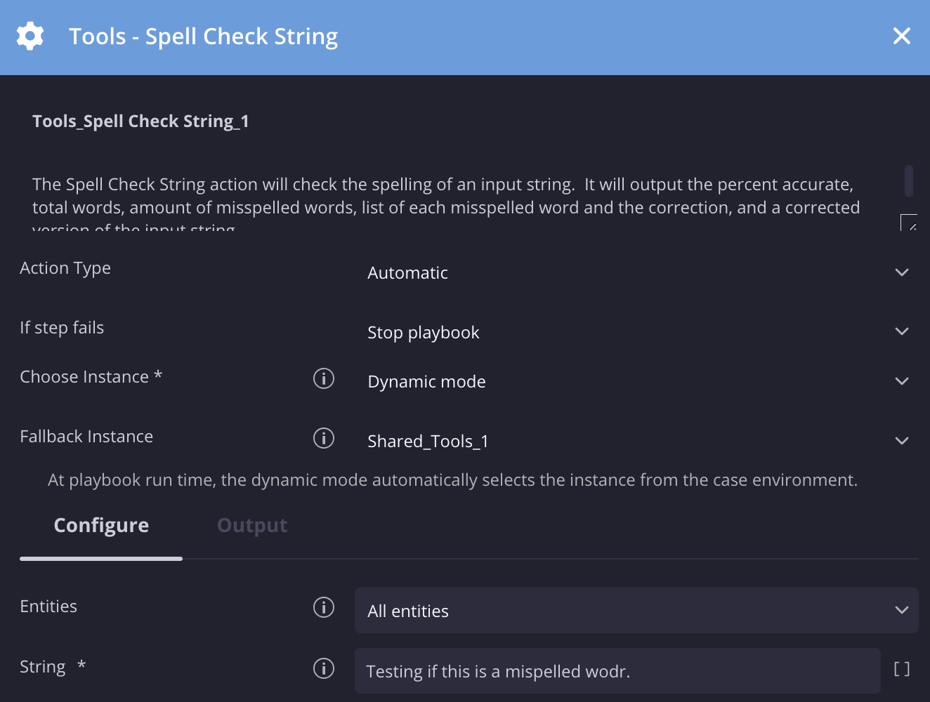 | String | String | – | Ja | Geben Sie den String an, der auf Rechtschreibfehler geprüft werden soll. |