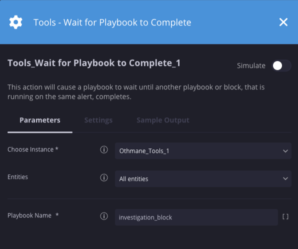 In diesem Fall wird das aktuelle Playbook pausiert, bis der „Untersuchungsblock“, der für dieselbe Benachrichtigung ausgeführt wird, abgeschlossen ist.