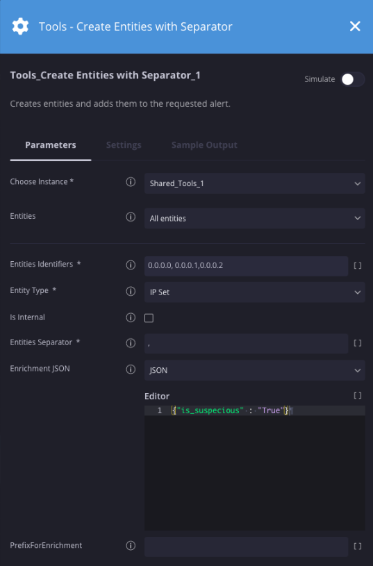 Alle Entitäten werden mit dem neuen Feld „siemplifytools_extracted_domain“ angereichert, das die aus der Entitäts-ID extrahierte Domain enthält. Wenn die Entität keine Domain hat (z. B. ein Dateihash), wird einfach nichts zurückgegeben. Neben Entitäten kann der Nutzer auch eine Liste von URLs als Parameter angeben und verarbeiten lassen, ohne dass sie angereichert werden.